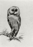 Drawing, Barn Owl Viewed from the Front,